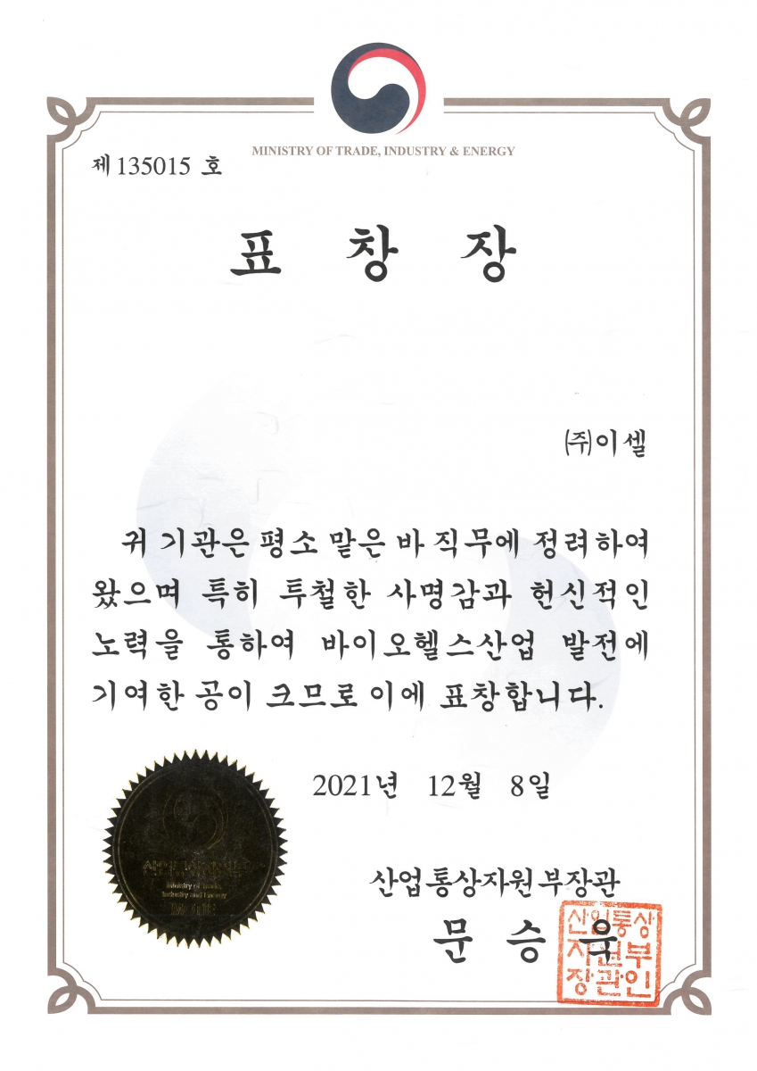 산업통상자원부 장관 표창장